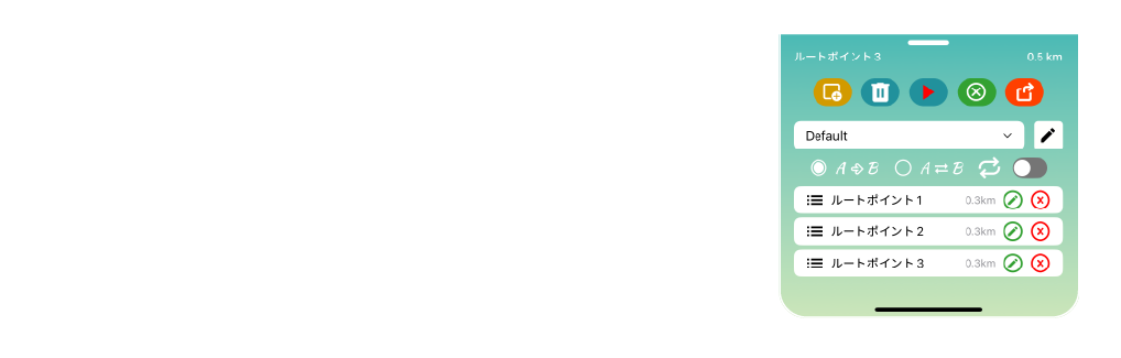 ルートポイントを追加:地図を長押しして座標を追加します。