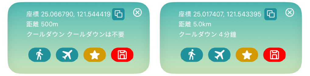 場所を検索: 検索バーに地名または座標を入力 → 「フライトゥ」または「移動」をタップします。