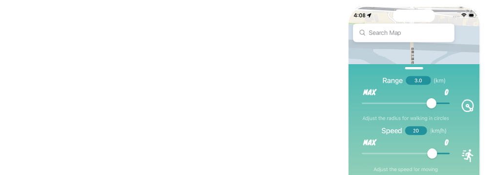 【Speed】: Adjust the movement speed (km/h).