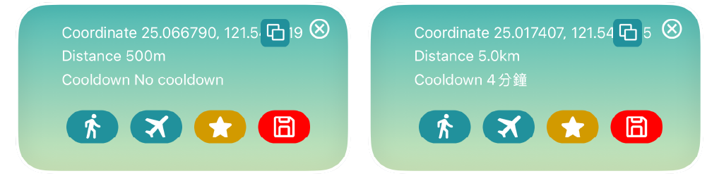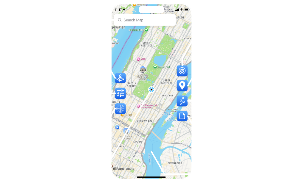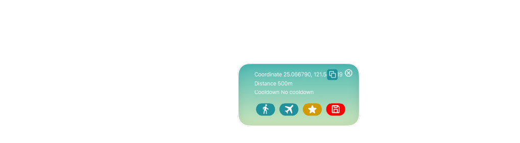 Left Side: Location Search Bar,Auto Circling,Settings,Movement Range